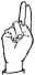 На ћирилици написано ПАУН ИЛИЋ састоји се из 8 слова [?]. Исписано ћириличном једноручном азбуком за глувонеме: